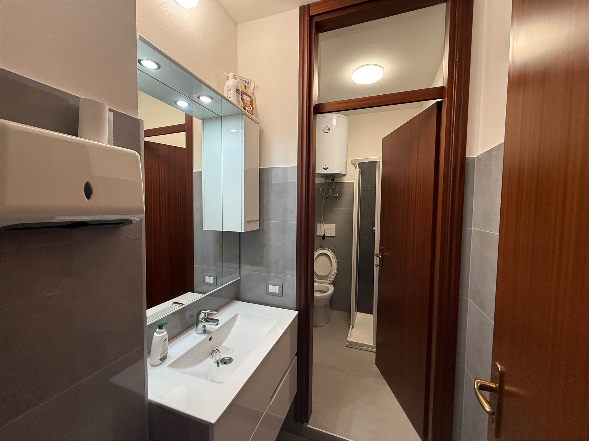 Il trilocale è stat completamente ristrutturato nel 2025, infissi in alluminio con vetro doppio, grès porcellanato come pavimentazione, boiler per l’acqua calda e il riscaldamento avviene mediante aria condizionata a pompa di calore in ogni stanza, pertanto non è presente l’utenza del gas, inoltre abbiamo la porta blindata.