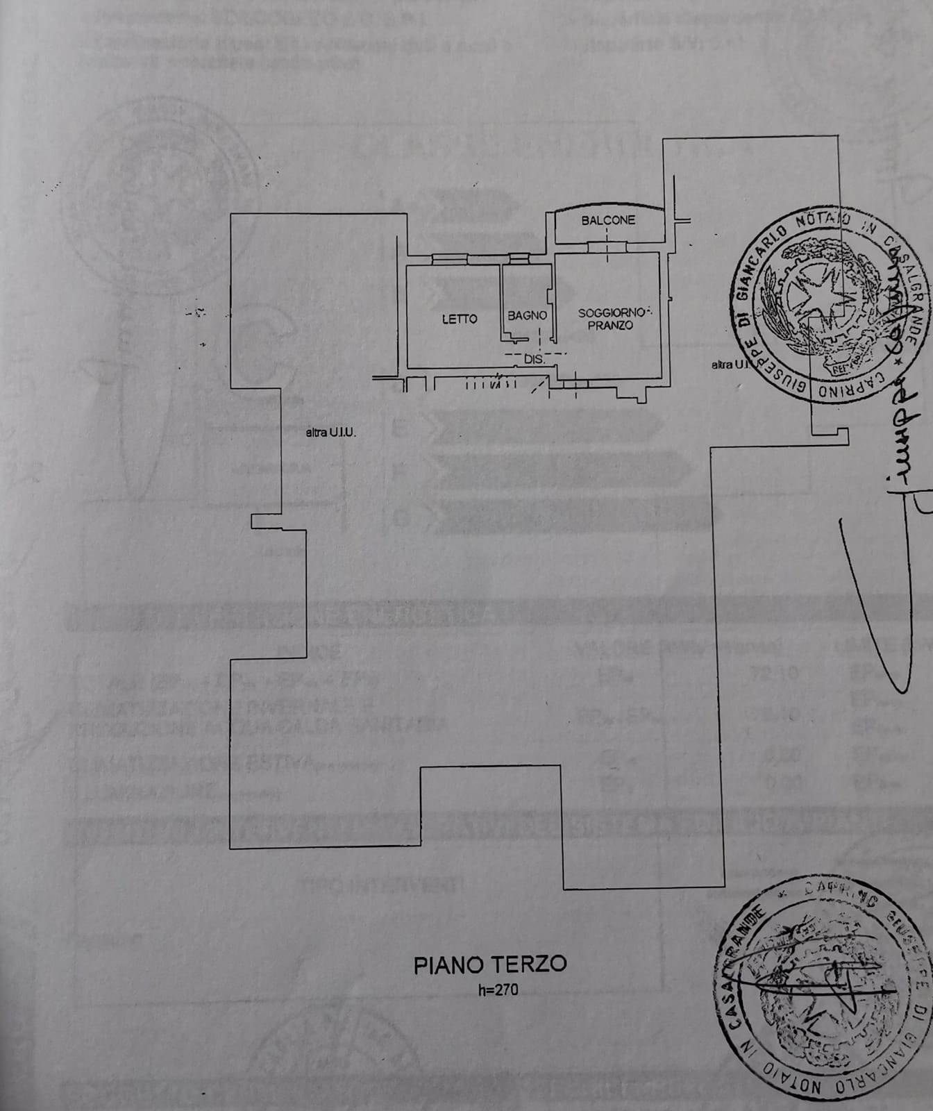 Terzo piano: Ingresso in soggiorno con cucina a vista con accesso al bellissimo e ampio balcone con vista sui monti, disimpegno notte, bagno con box doccia e attacco per la lavatrice e camera da letto matrimoniale molto ampia.